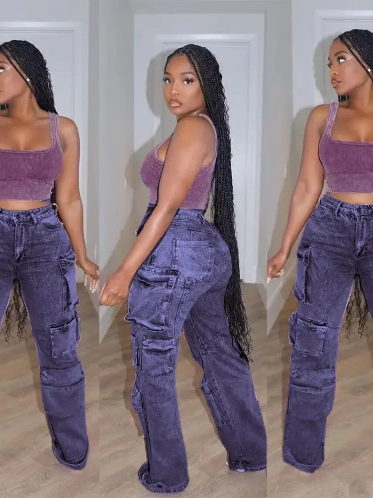 Multi-Pocket Denim Cargo Pants$59.00 -