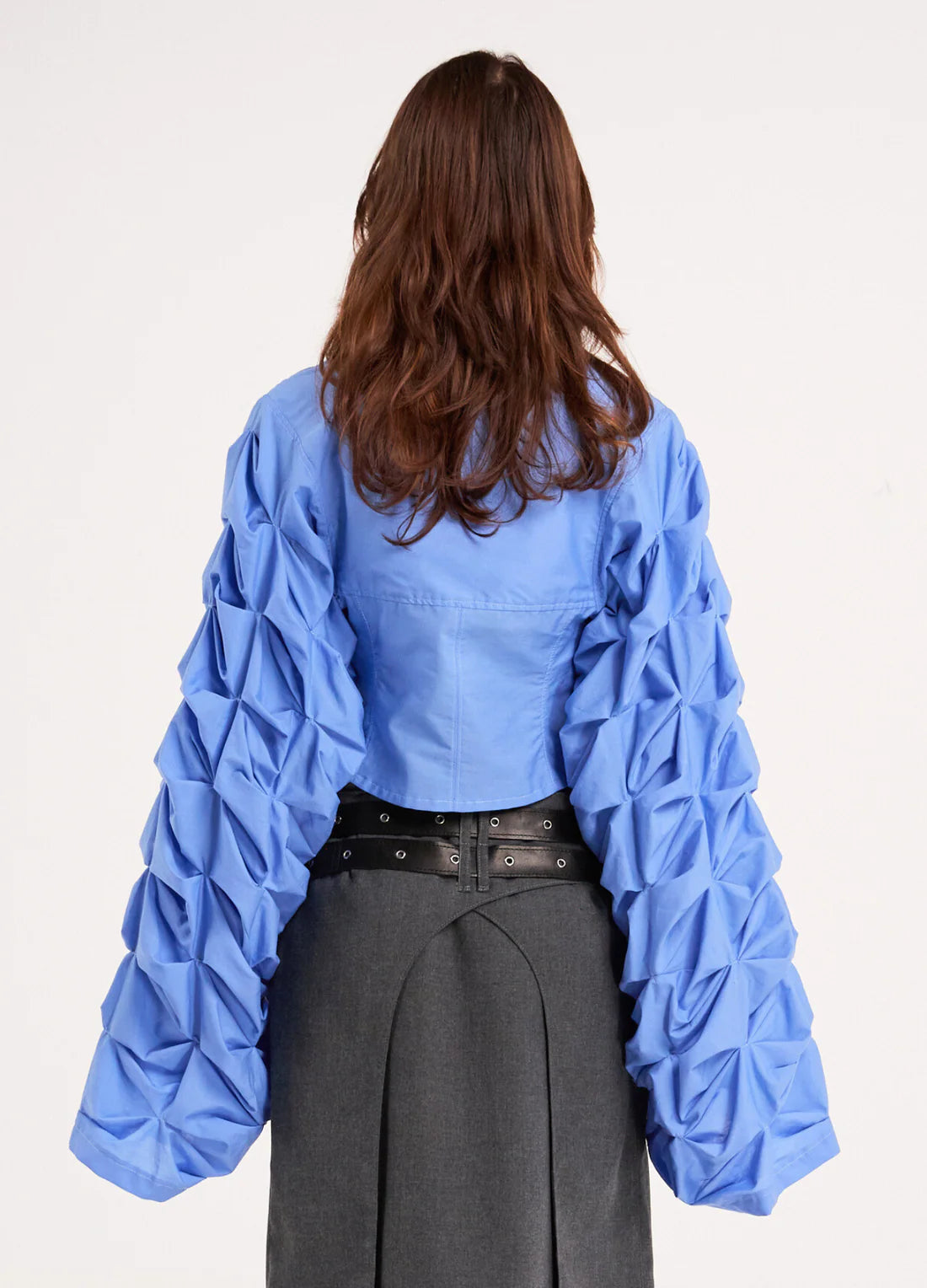 Save $128.10Bright Blue Ruched Puff-Sleeve Crop Shirt$49.90 $178.00 -