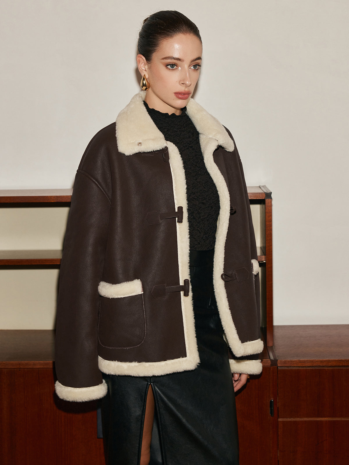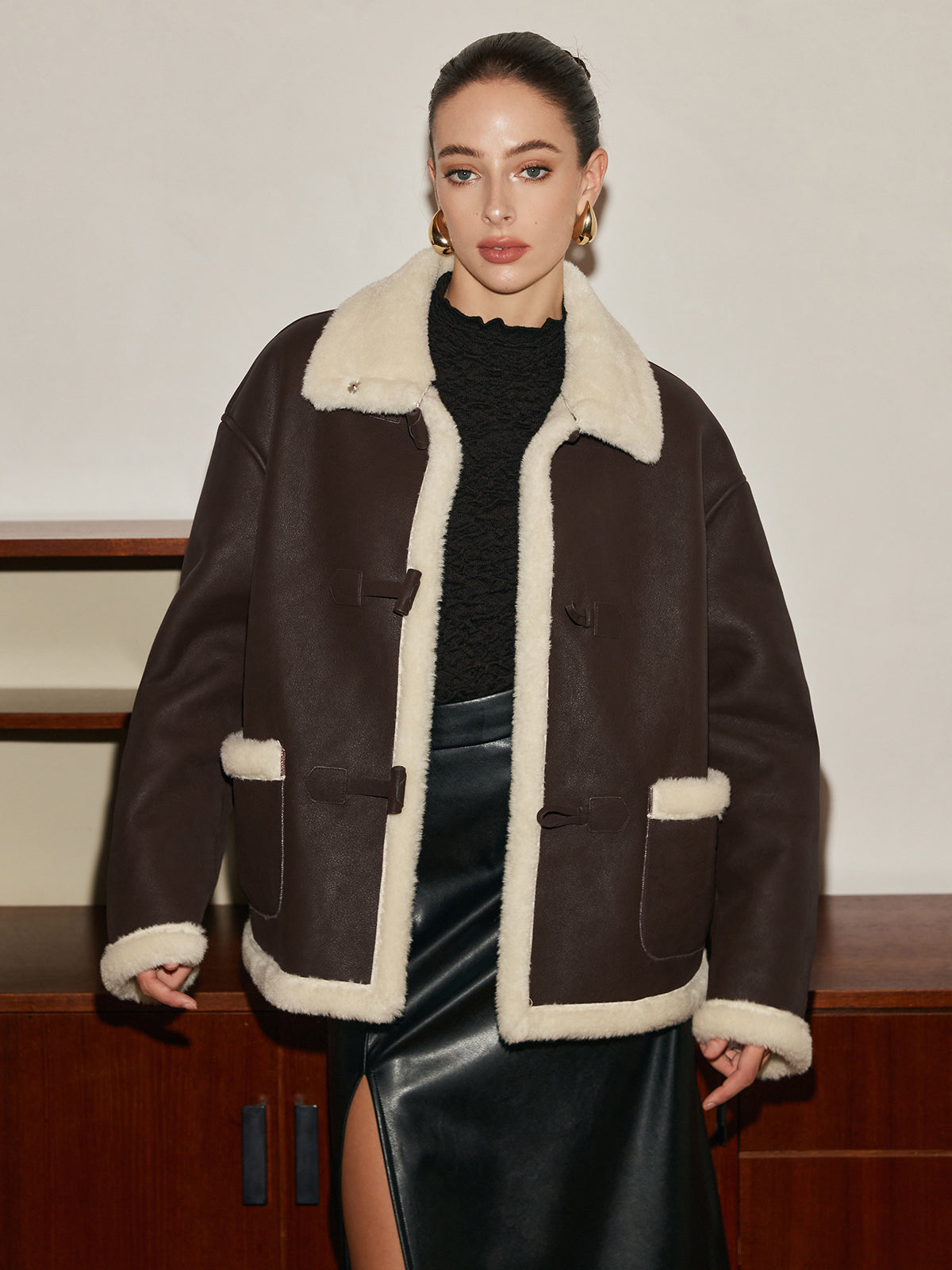 Fleece Lined Faux Leather Lapel Coat$110.00 -