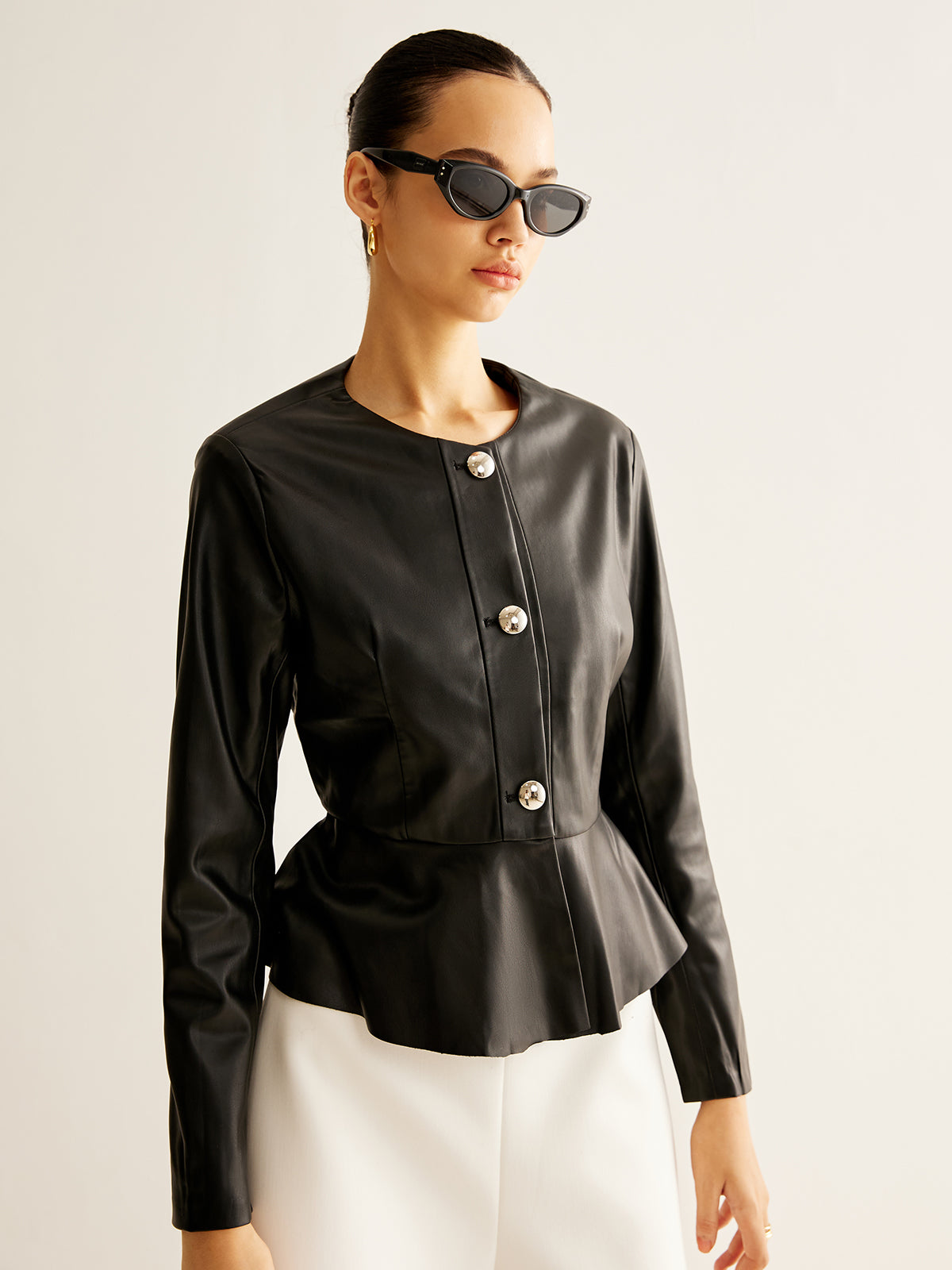 Button Clasp PU Leather Jacket$83.00 -