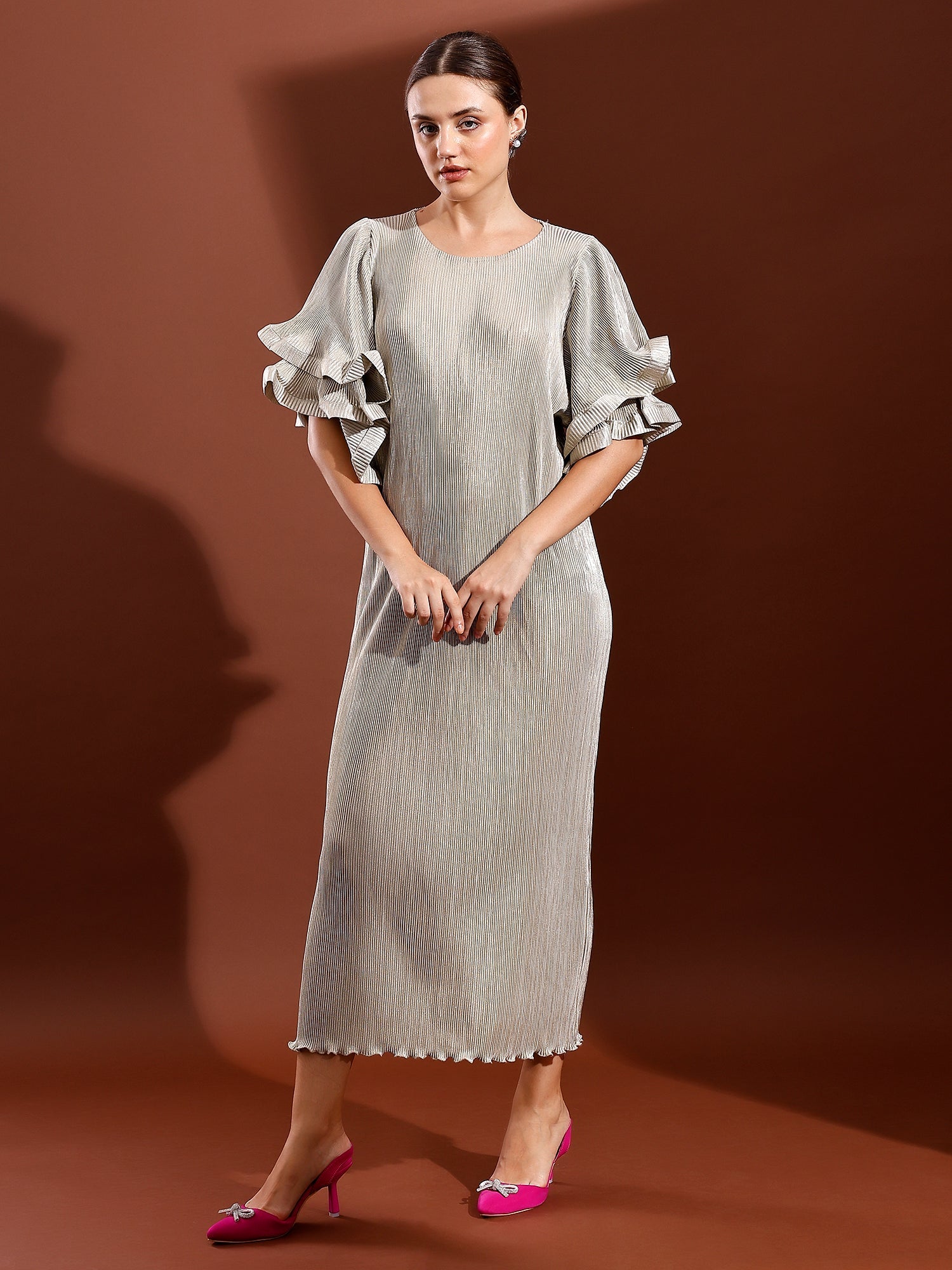 Save $93.10Metallic ruffled sleeve midi dress$65.90 $159.00 -