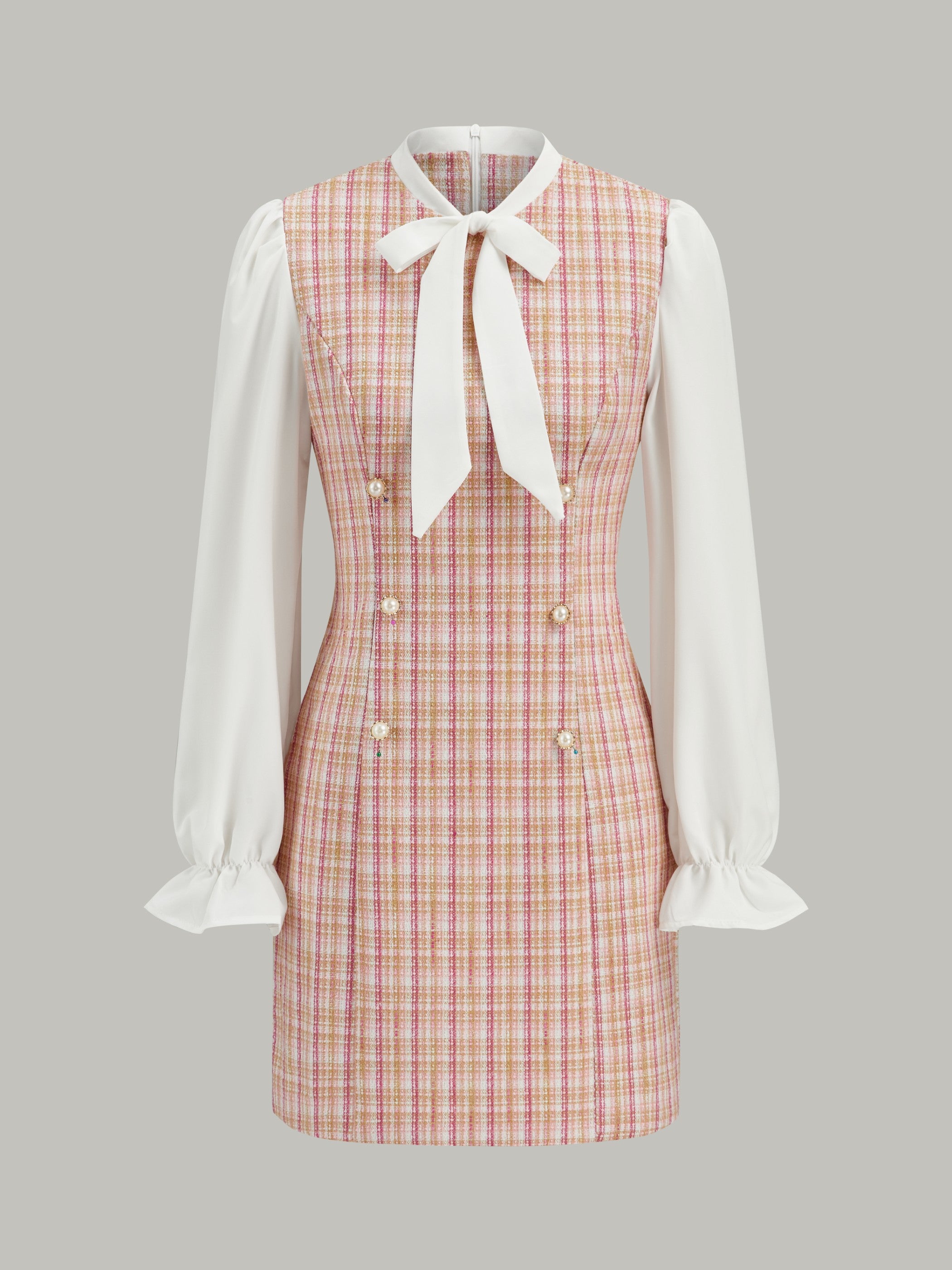 Bow Neckline Tweed Paneled Mini Dress$58.80 -