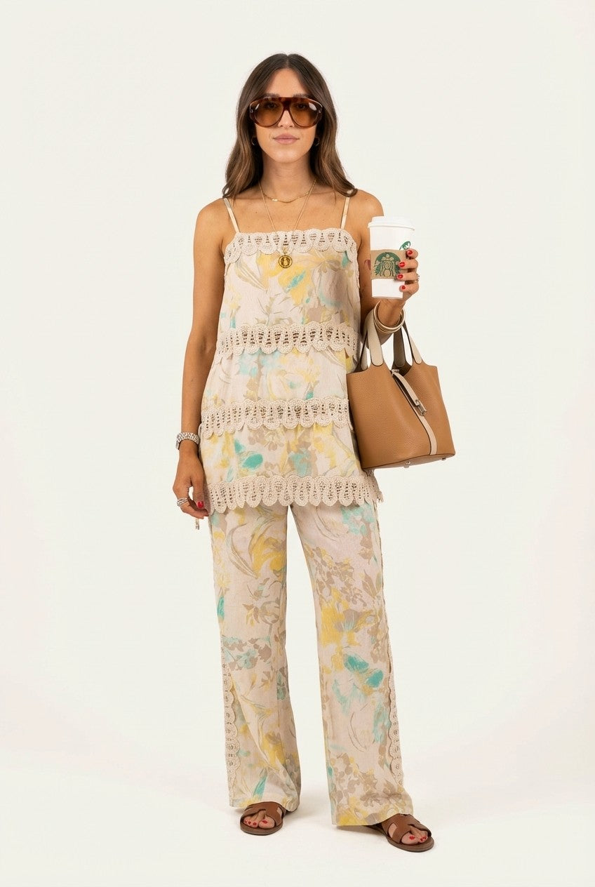 Save $44.09Women's Floral Linen Crochet Lace Camisole and Pants Set$55.90 $99.99 -