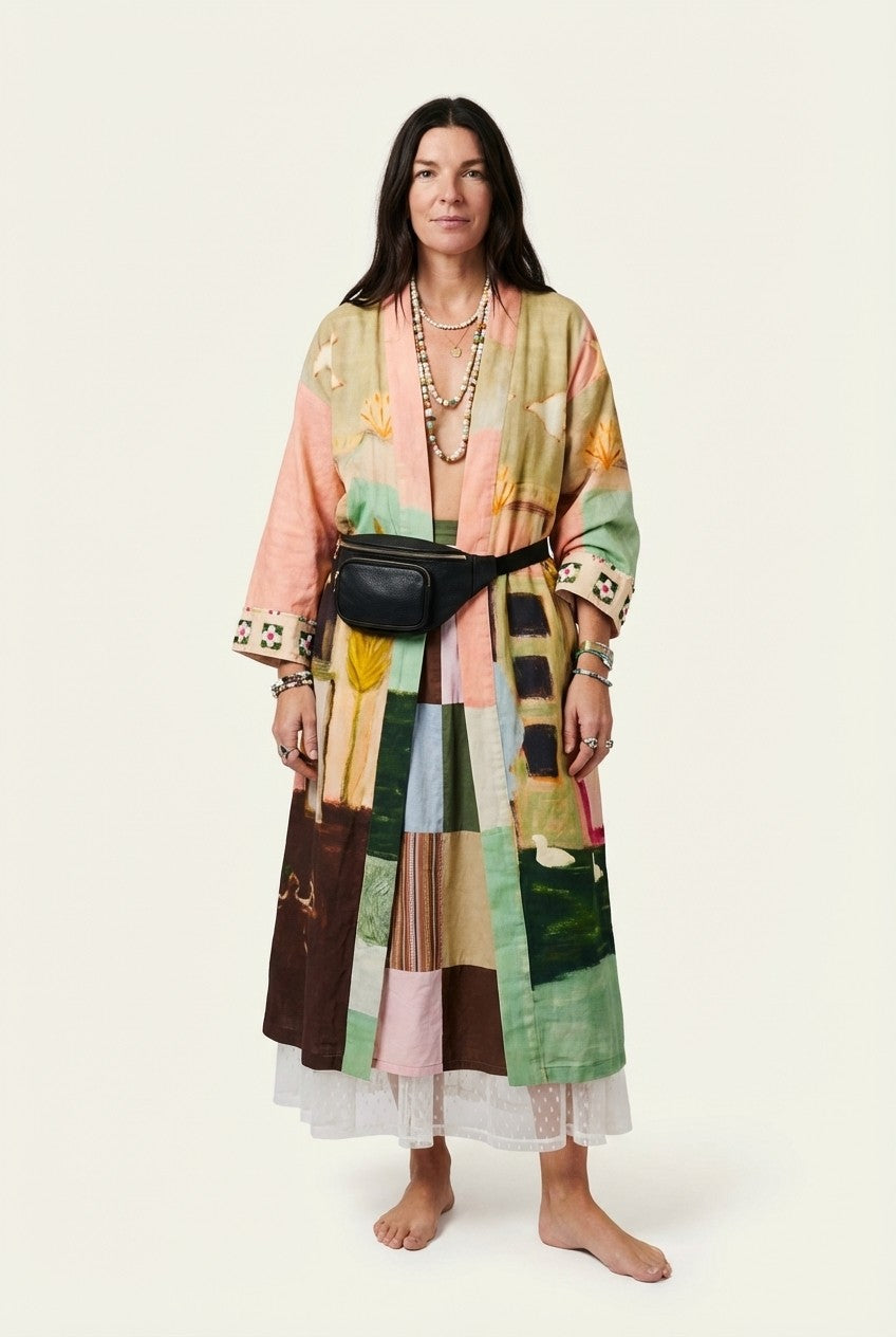 Save $30.09Women's Artistic Patchwork Linen Kimono Jacket Long Open Front Duster$69.90 $99.99 -