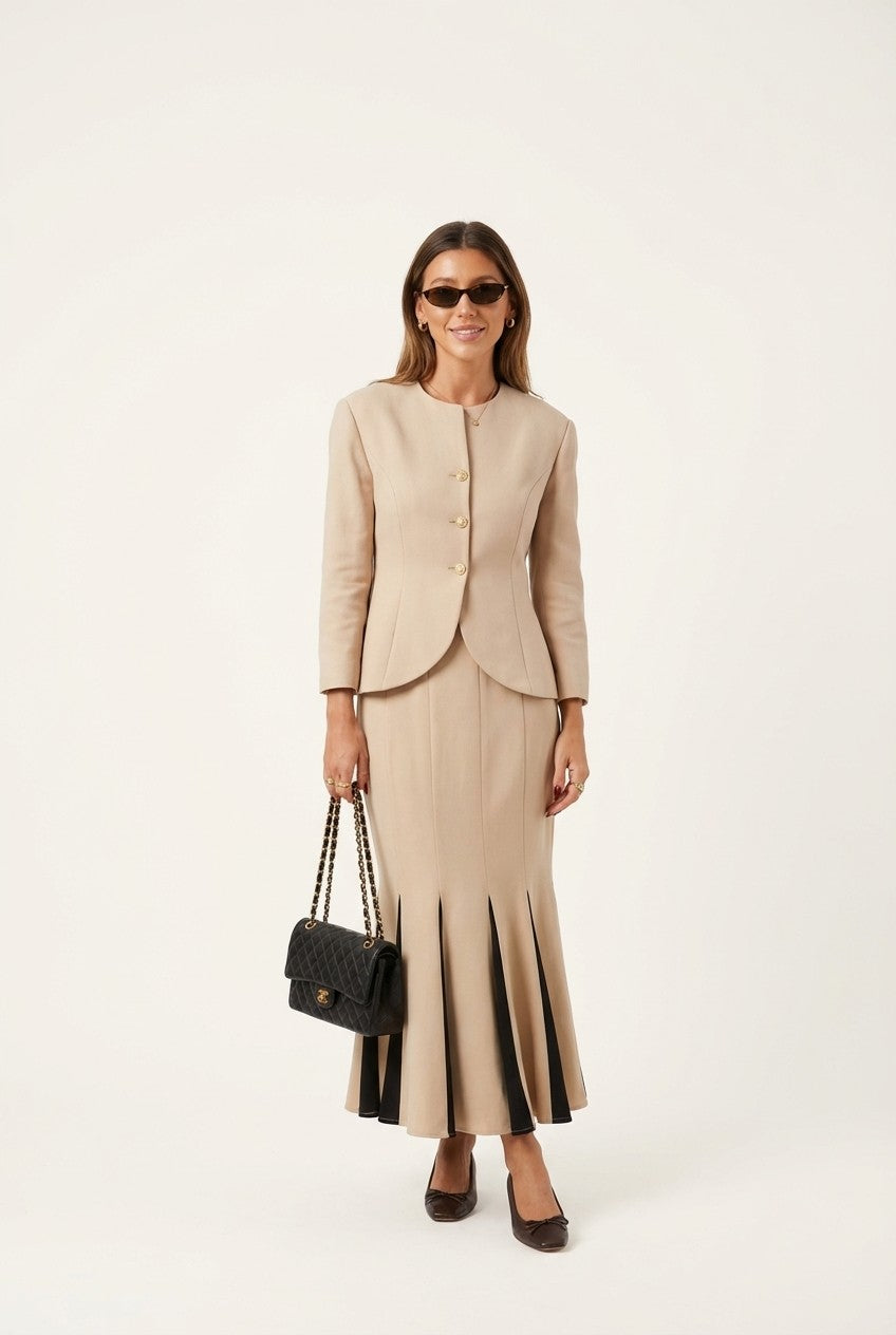 Save $44.09Women's Tailored Sand Blazer and Fluted Skirt Set Elegant Suit$55.90 $99.99