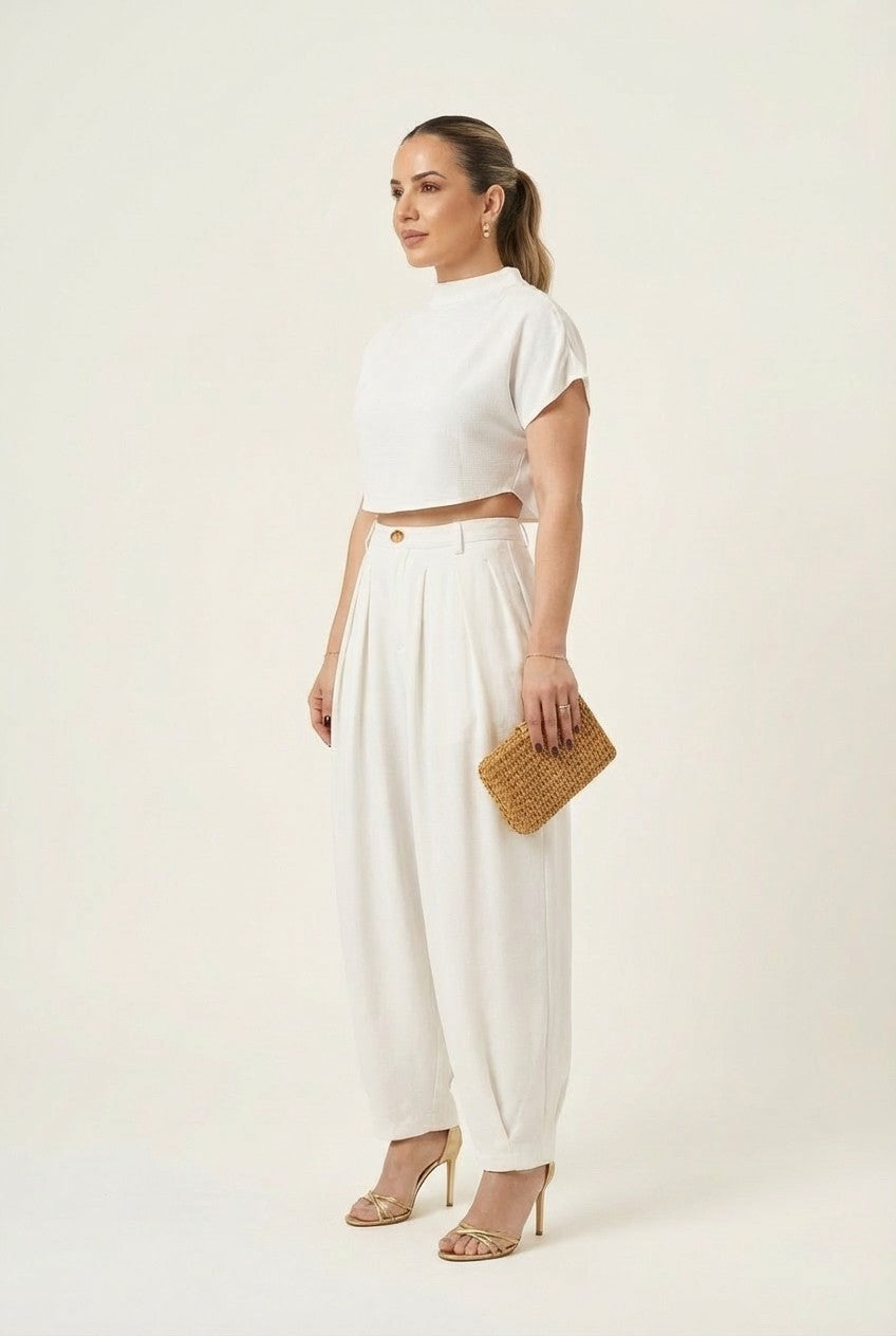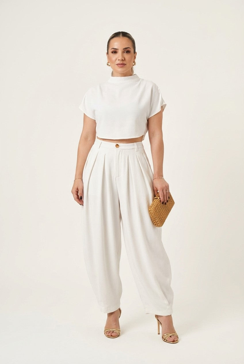 Save $44.09Women's Ribbed Hem High Neck Blouse and Wide Leg Pants Set$55.90 $99.99 -