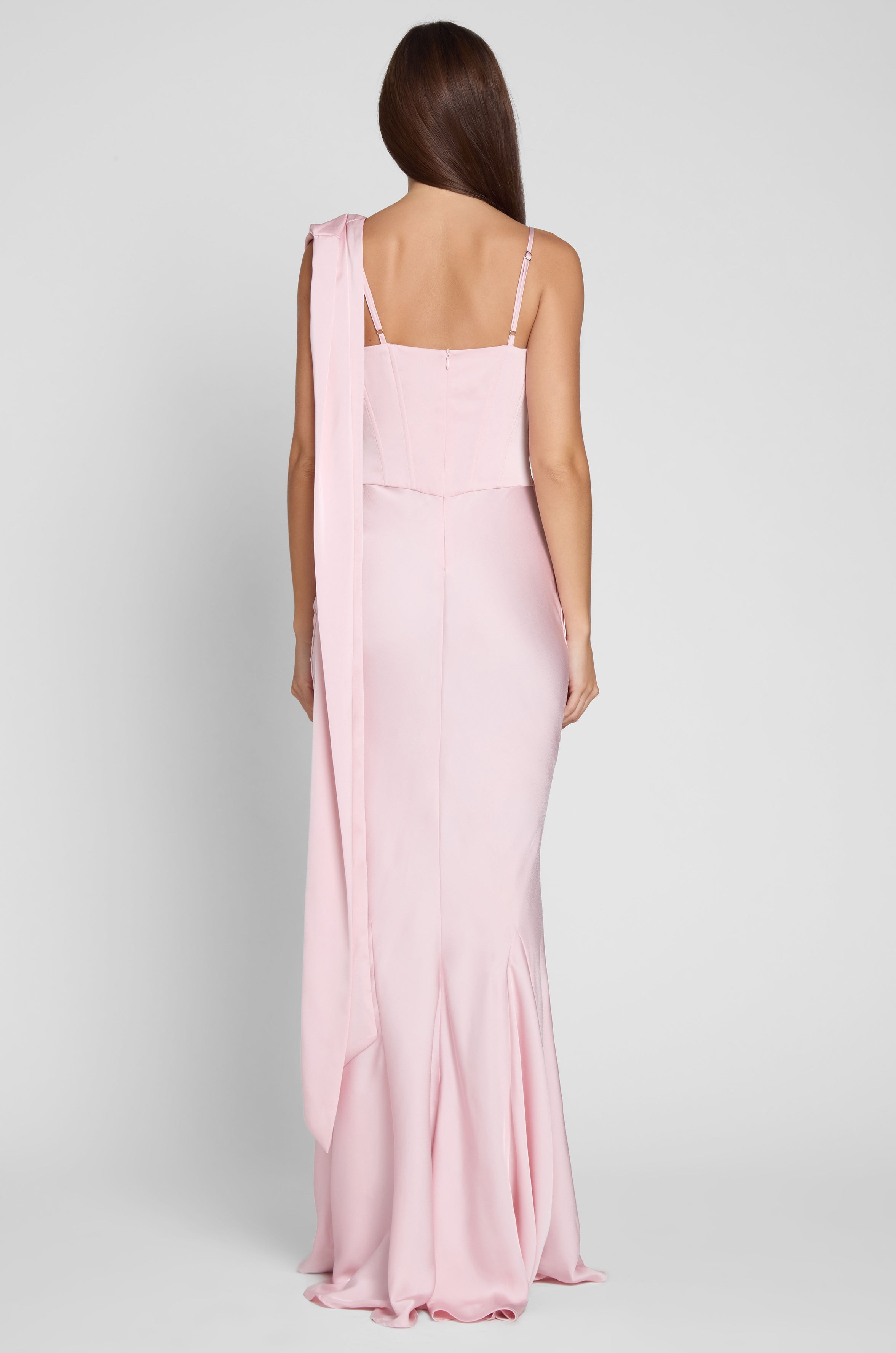Elevate your formal wardrobe with this Asymmetric Drape Gown. The sleek satin fabric, asymmetric neckline, and delicate floral detail create a sophisticated, elegant look. Perfect for black - tie events, weddings, or galas. Pair with minimalist jewelry and strappy heels to complete the timeless ensemble.