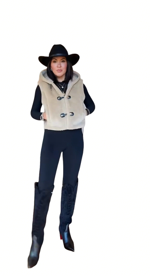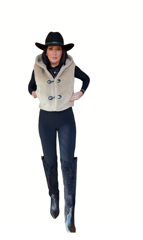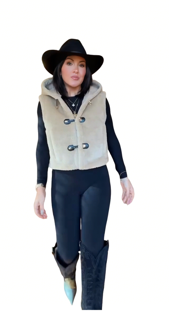 This beige faux fur hooded tweed vest is soft and comfortable, exuding effortless charm and enhancing the wearer's comfort and casual feel.
