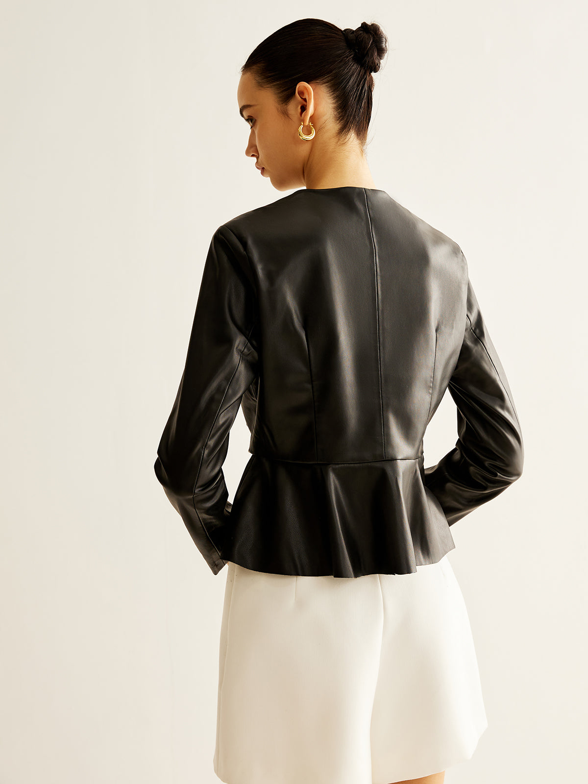 Breasted Ruffle Faux Leather Jacket