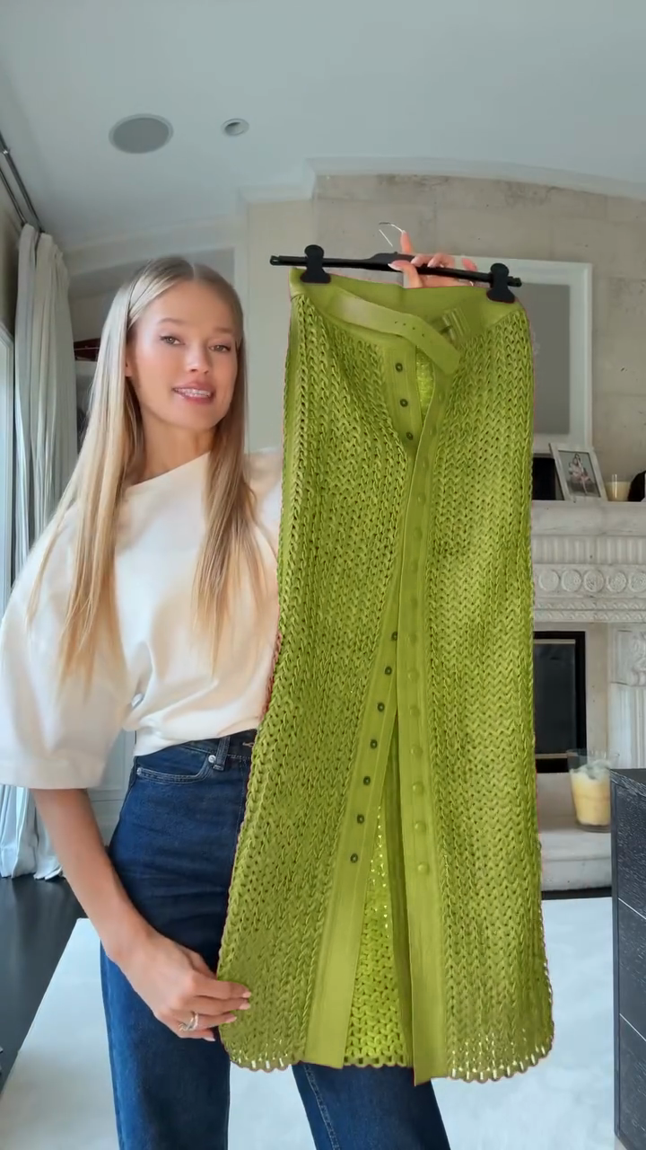 Elevate your wardrobe with this Brown Crochet Midi Skirt. The intricate crochet design, button - front detail, and leather trim create a stylish, textured look. Perfect for adding a bohemian - chic touch to your outfits. Pair with a simple tee and sandals for a casual vibe or dress it up with a blouse and heels.