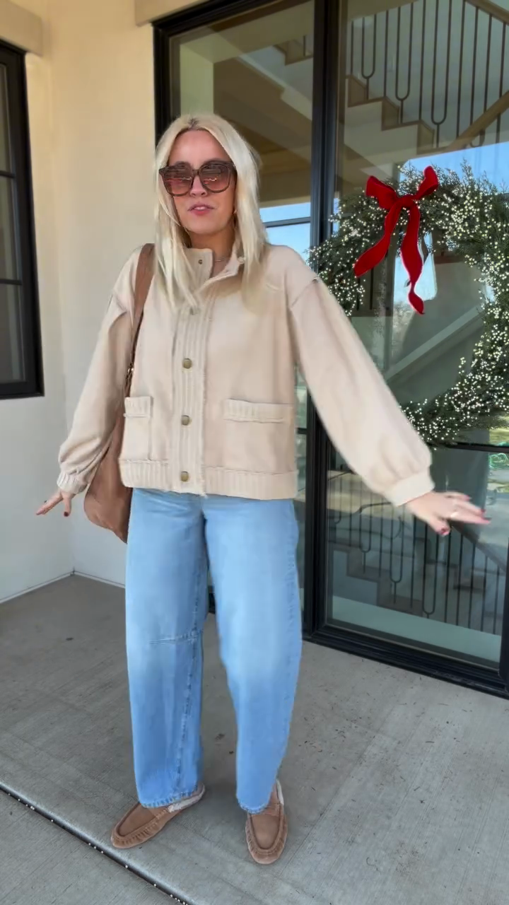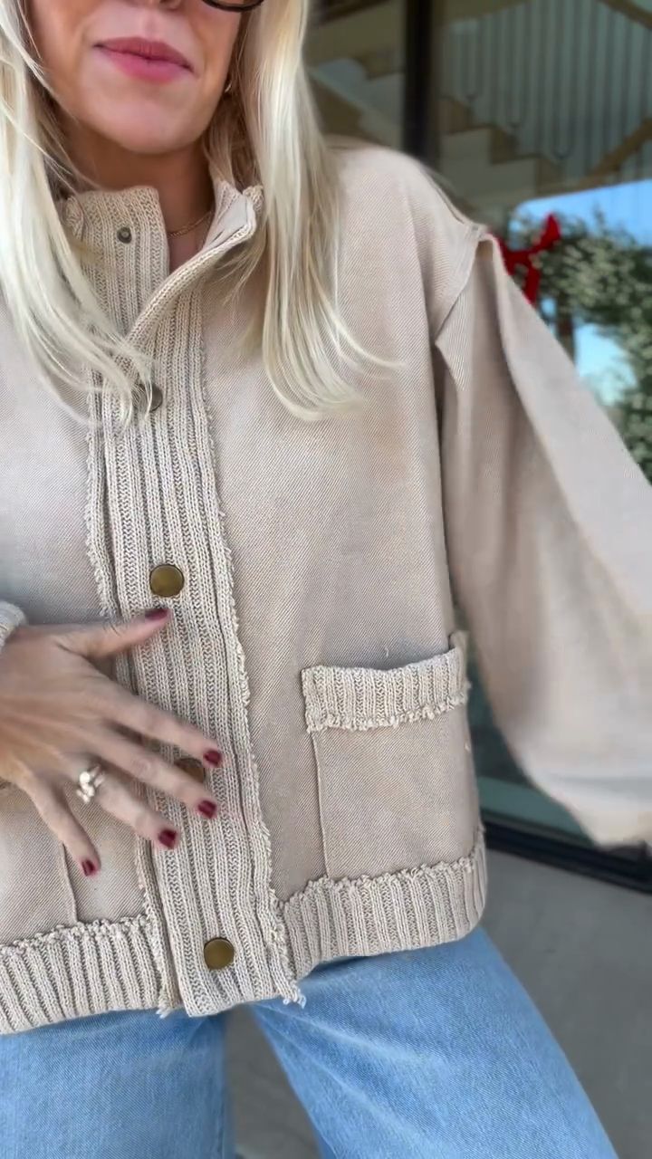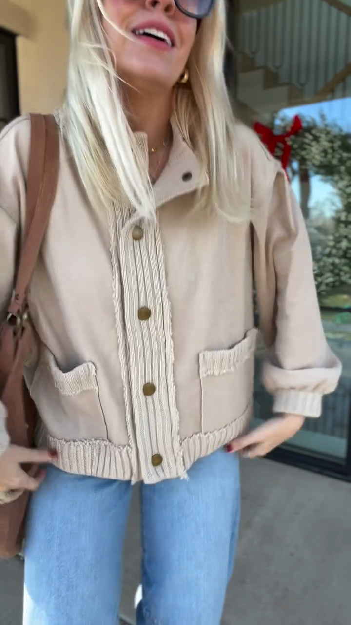 A  textured knit cardigan crafted from soft ribbed knit fabric . Blends casual comfort with minimalist charm, fitting daily errands, loungewear styling or transitional-season outings—pair with high-waisted denim or leggings to highlight the jacket’s relaxed yet polished vibe.