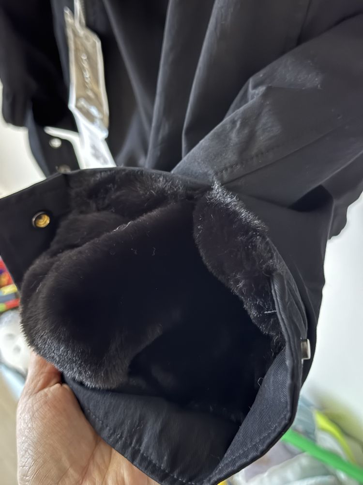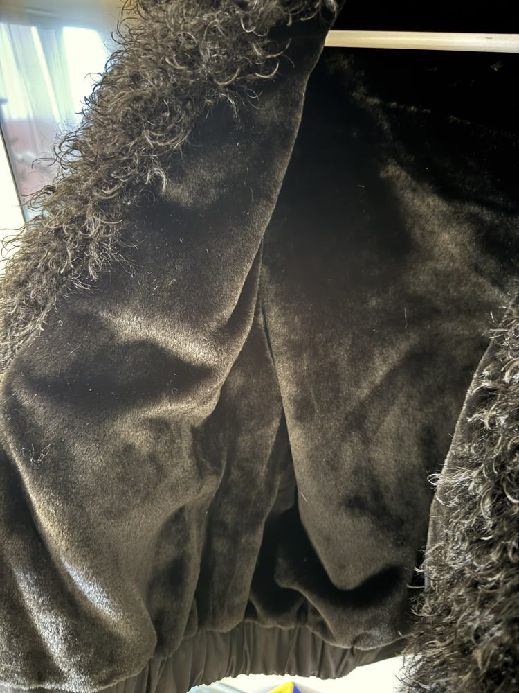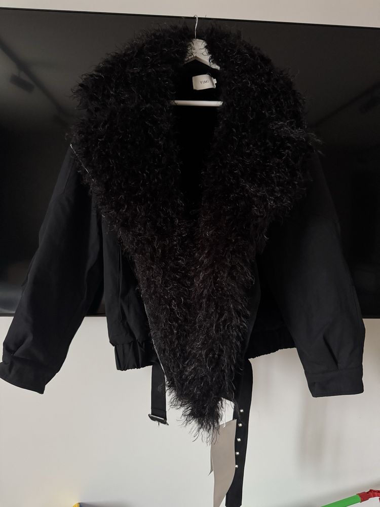 Curly faux fur collar parka