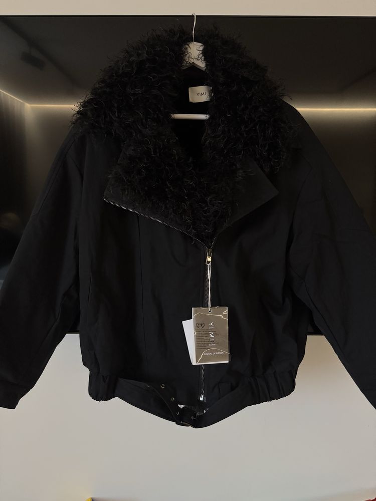 ✔ Voluminous curly faux fur collar