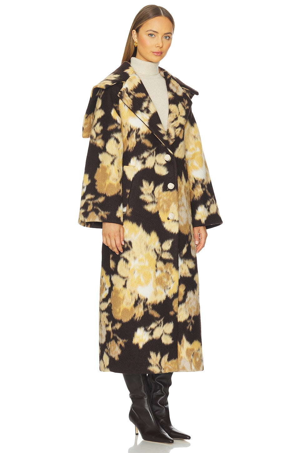 • Design: Floral-Print Oversized Long Wool Coat