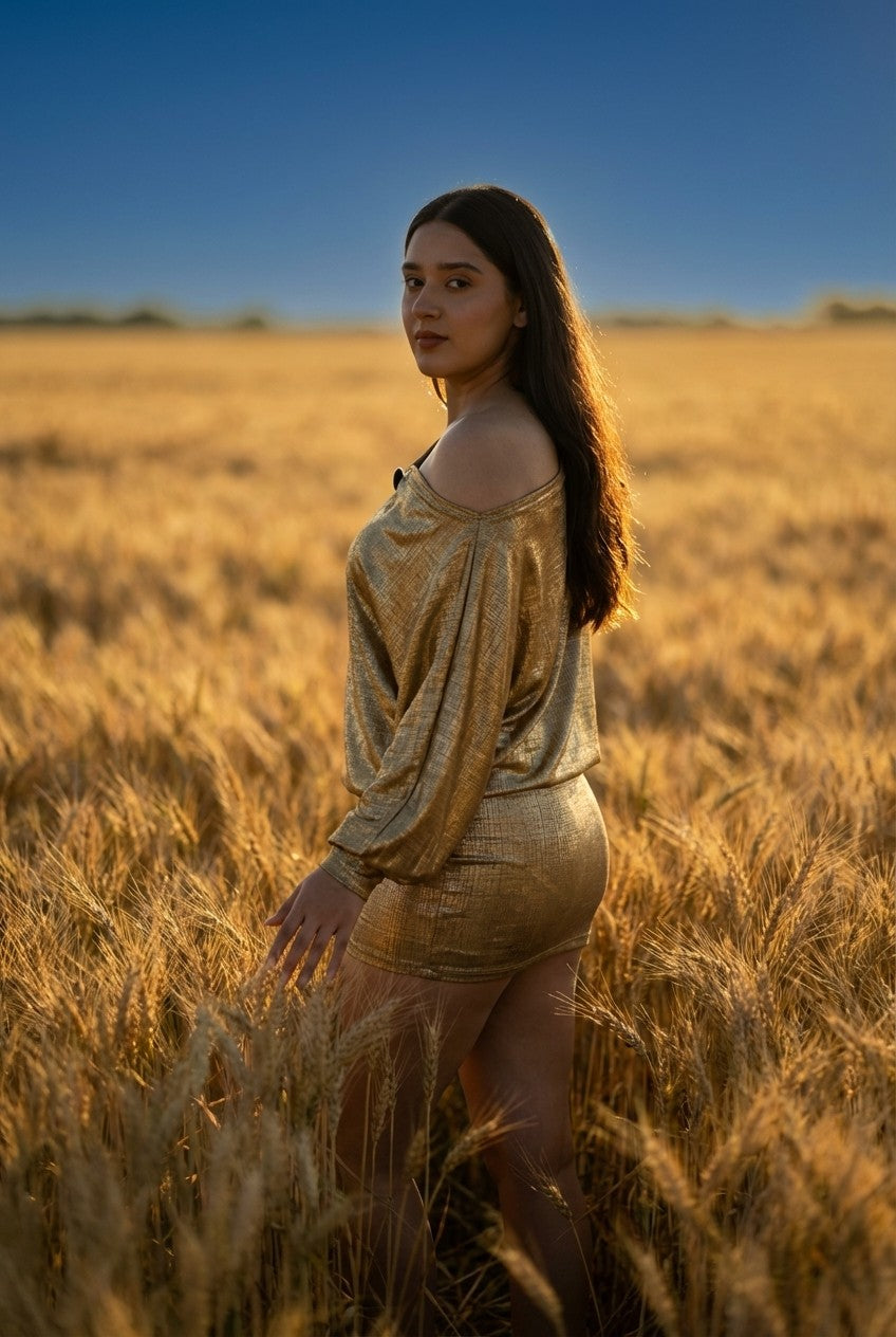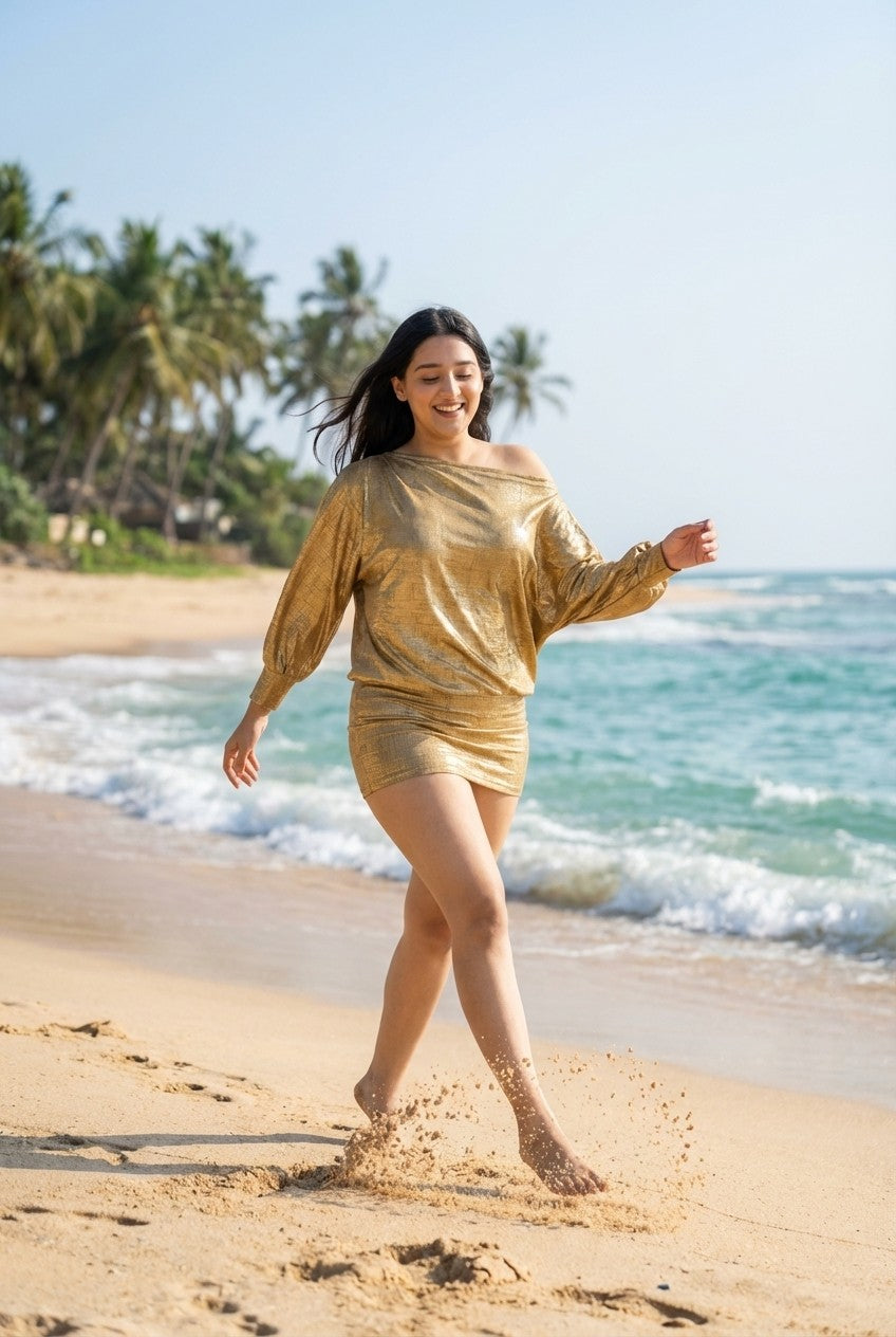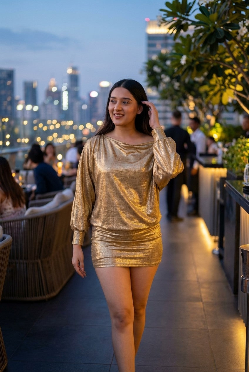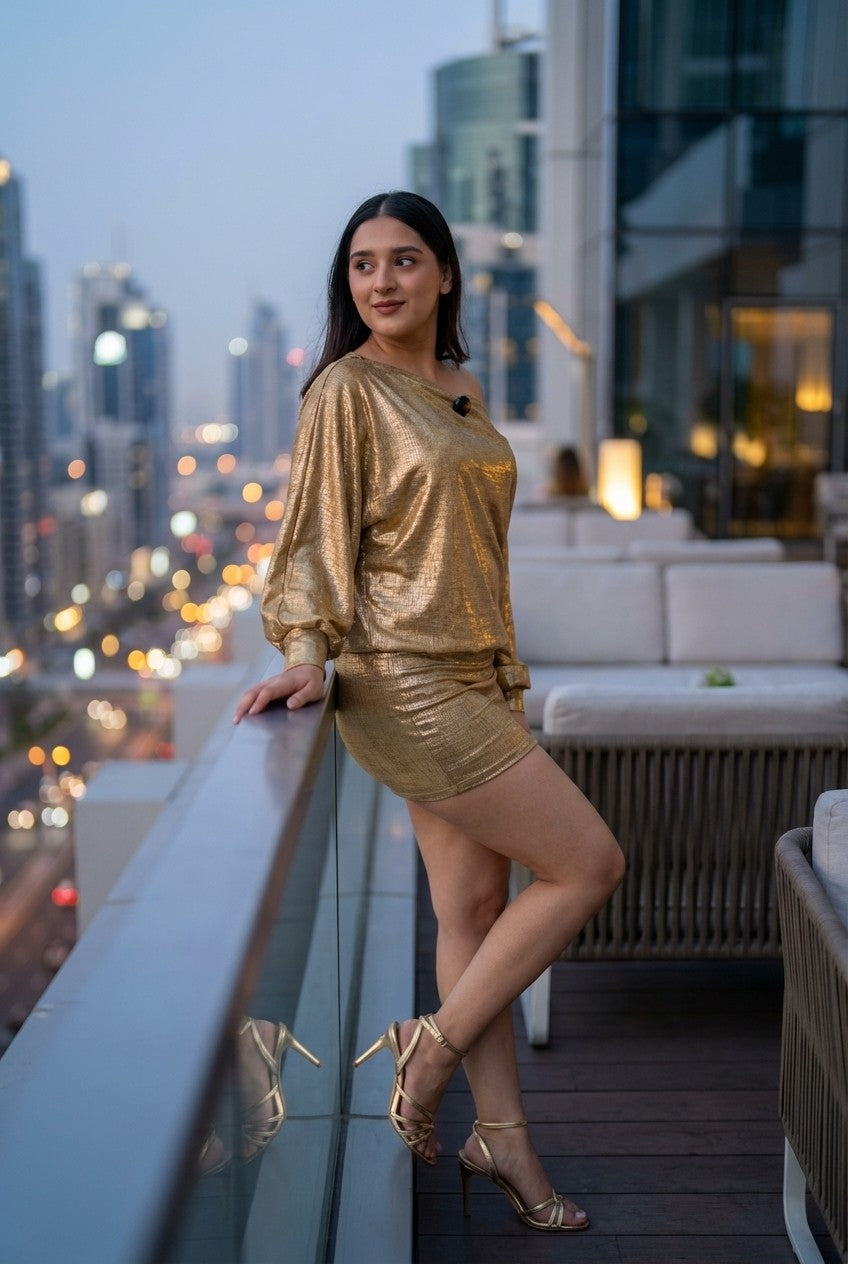 Pair it with heels and statement earrings for a glamorous evening look, or style it with minimal accessories to let the shimmer speak for itself.