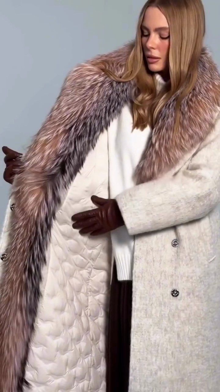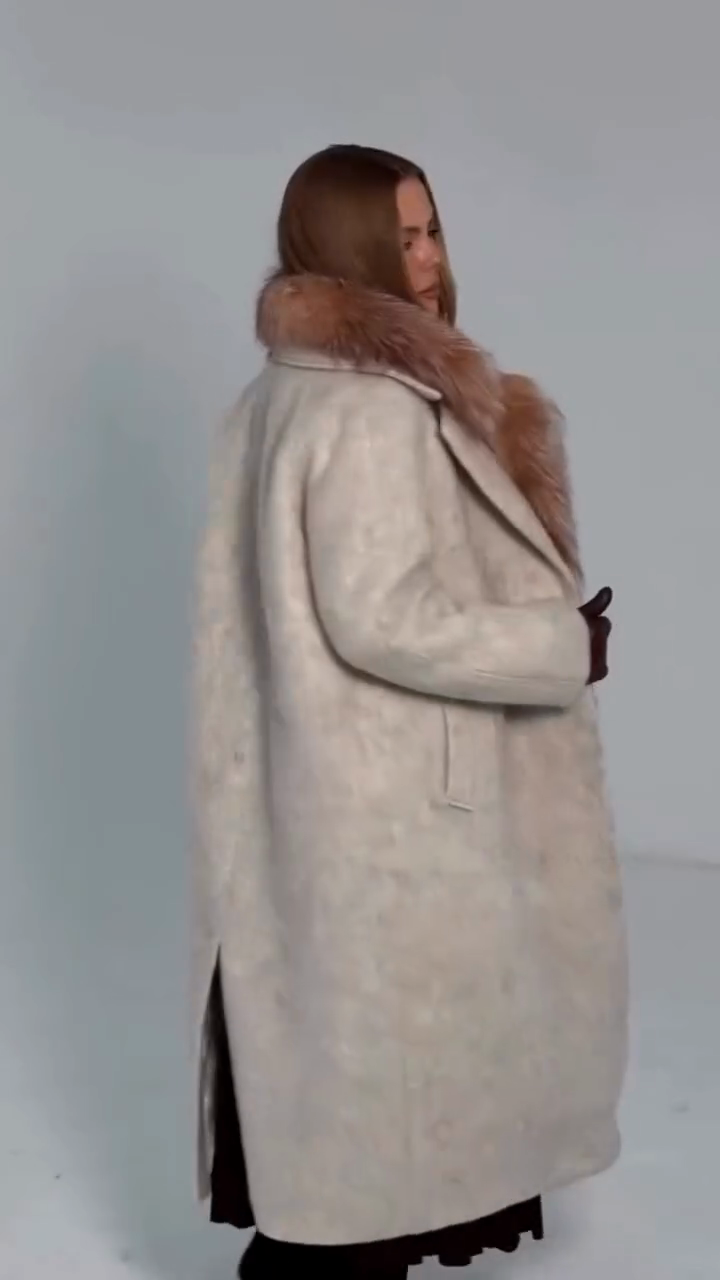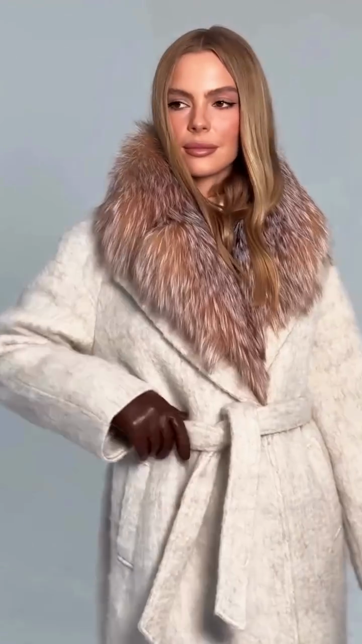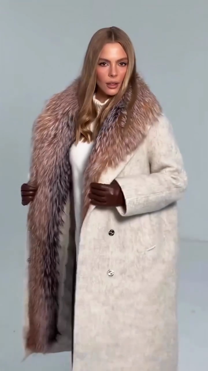 • Material: Soft textured wool (outer) + multi-tonal ombre fox fur