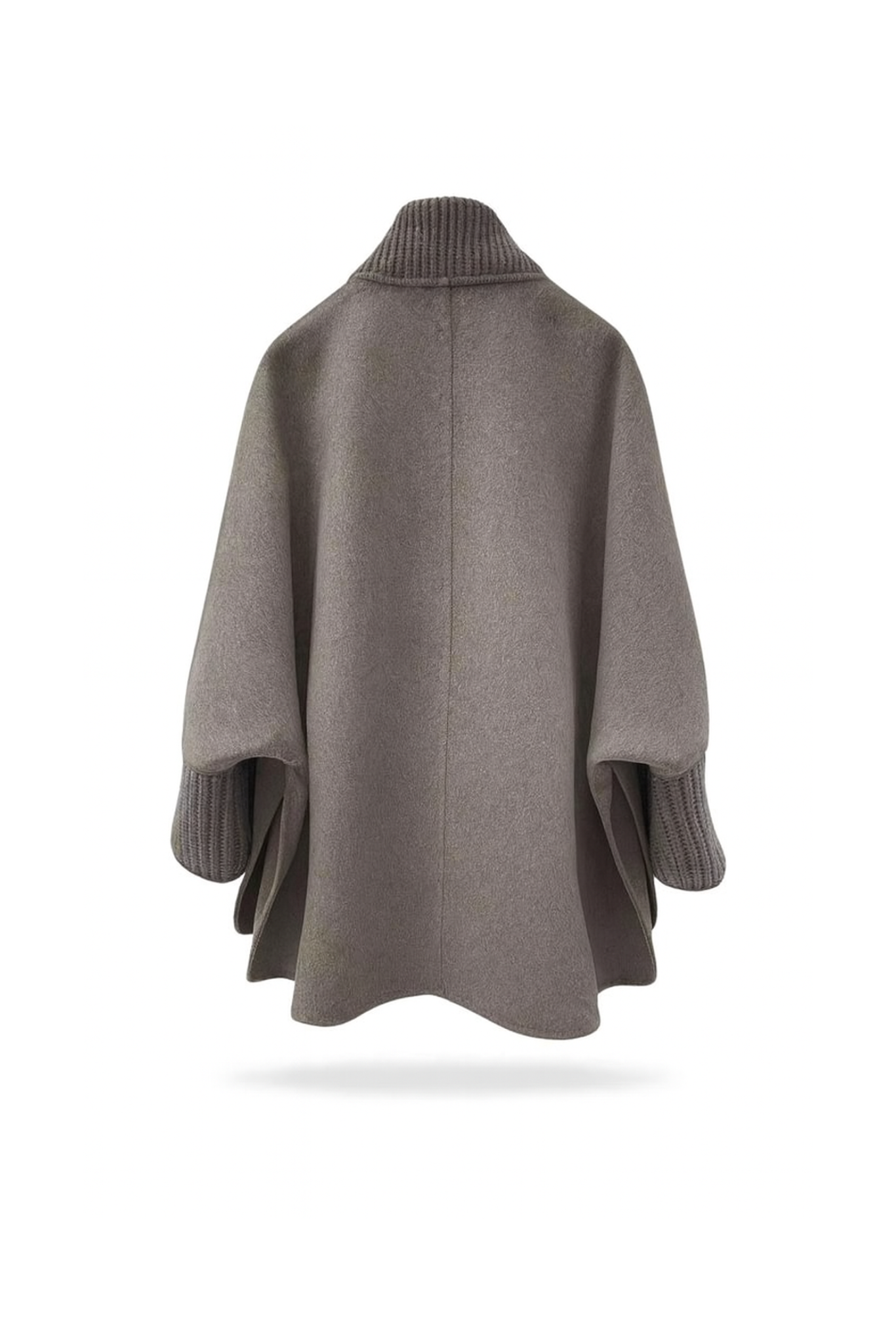 Knitted trim taupe wool coat