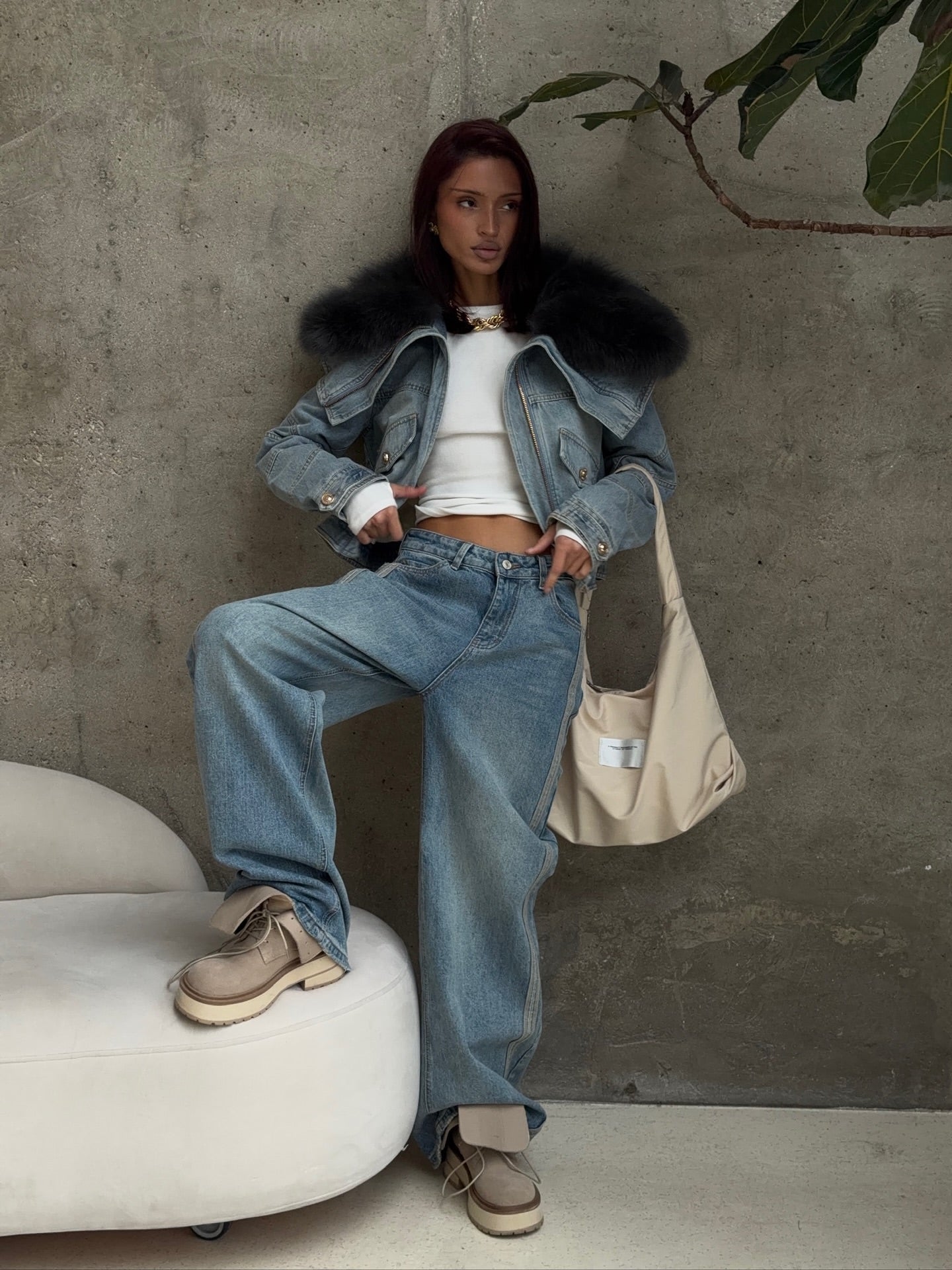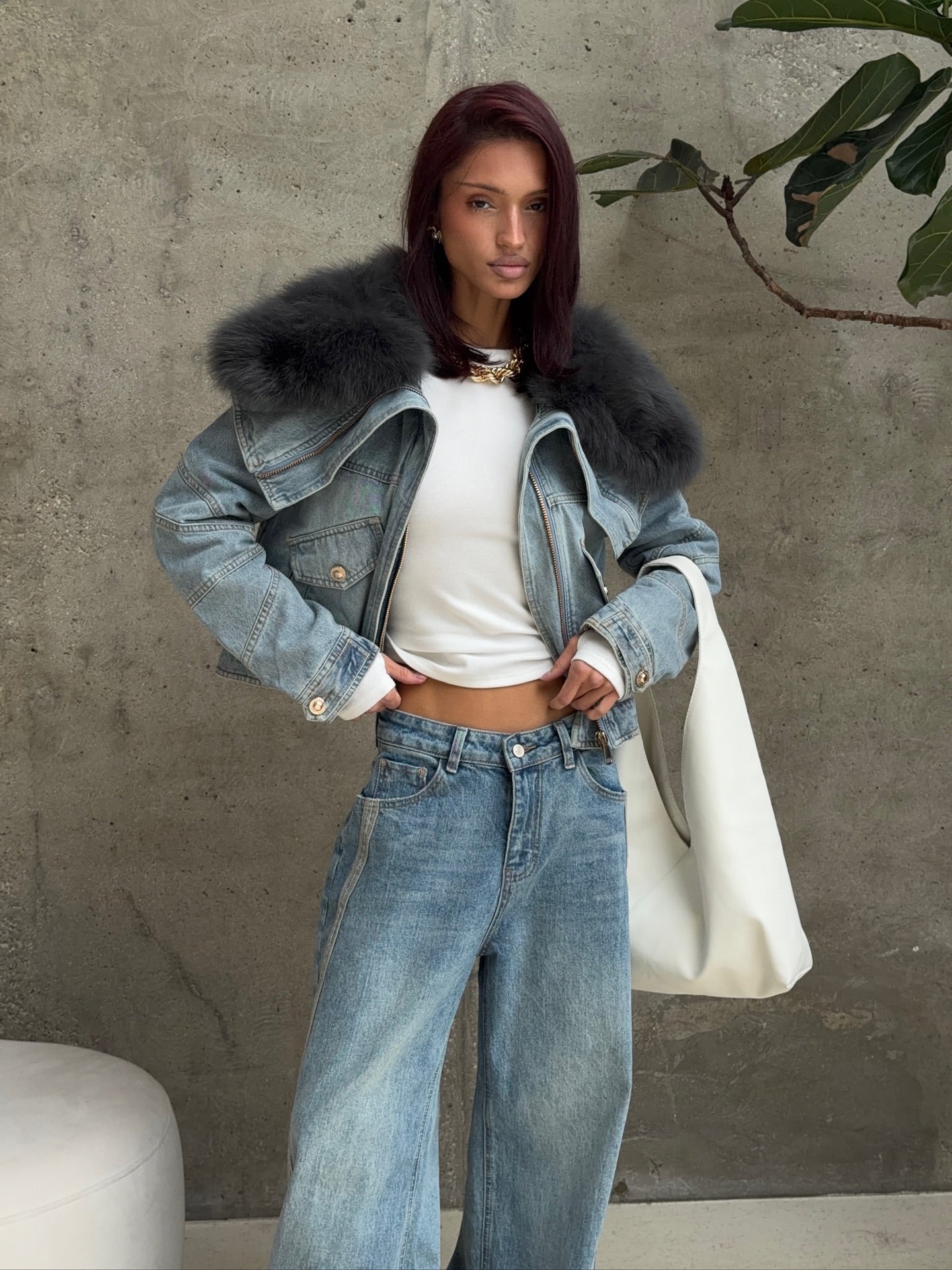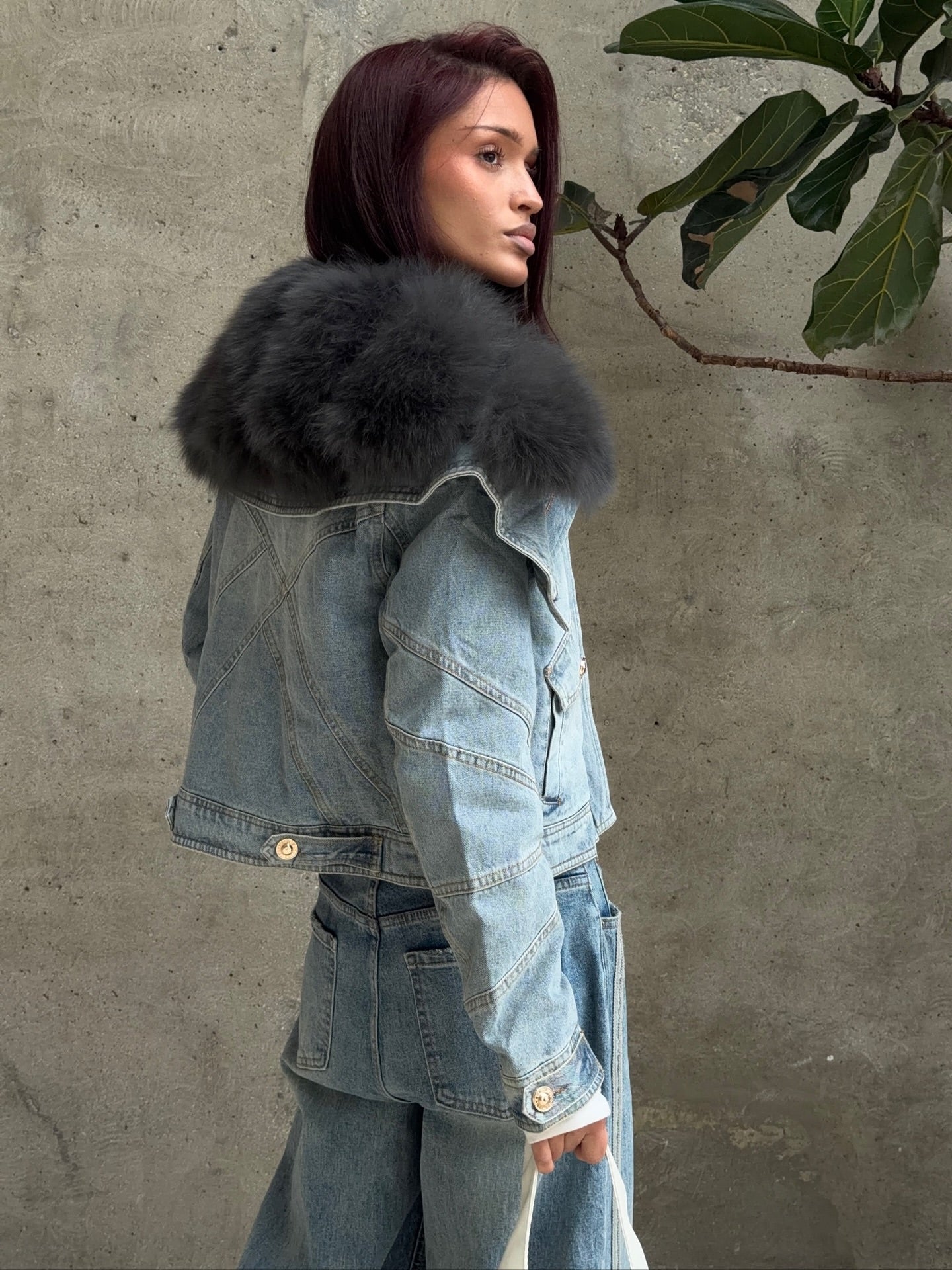 Design: Wool trim, cropped cut, motorcycle zipper