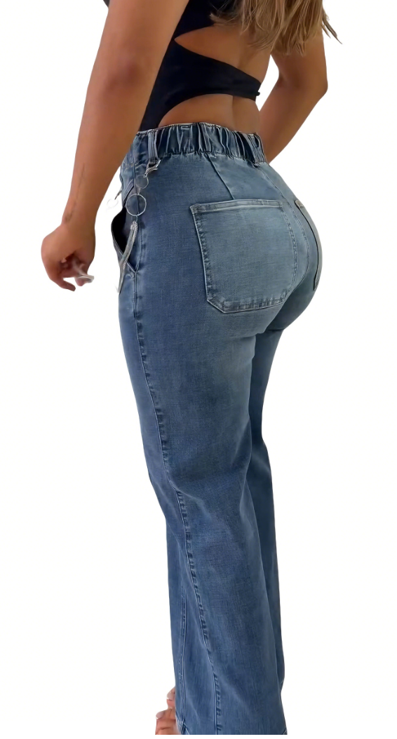 ✅ Versatile medium blue washed denim fabric, suitable for year-round wear and easily creates various looks.