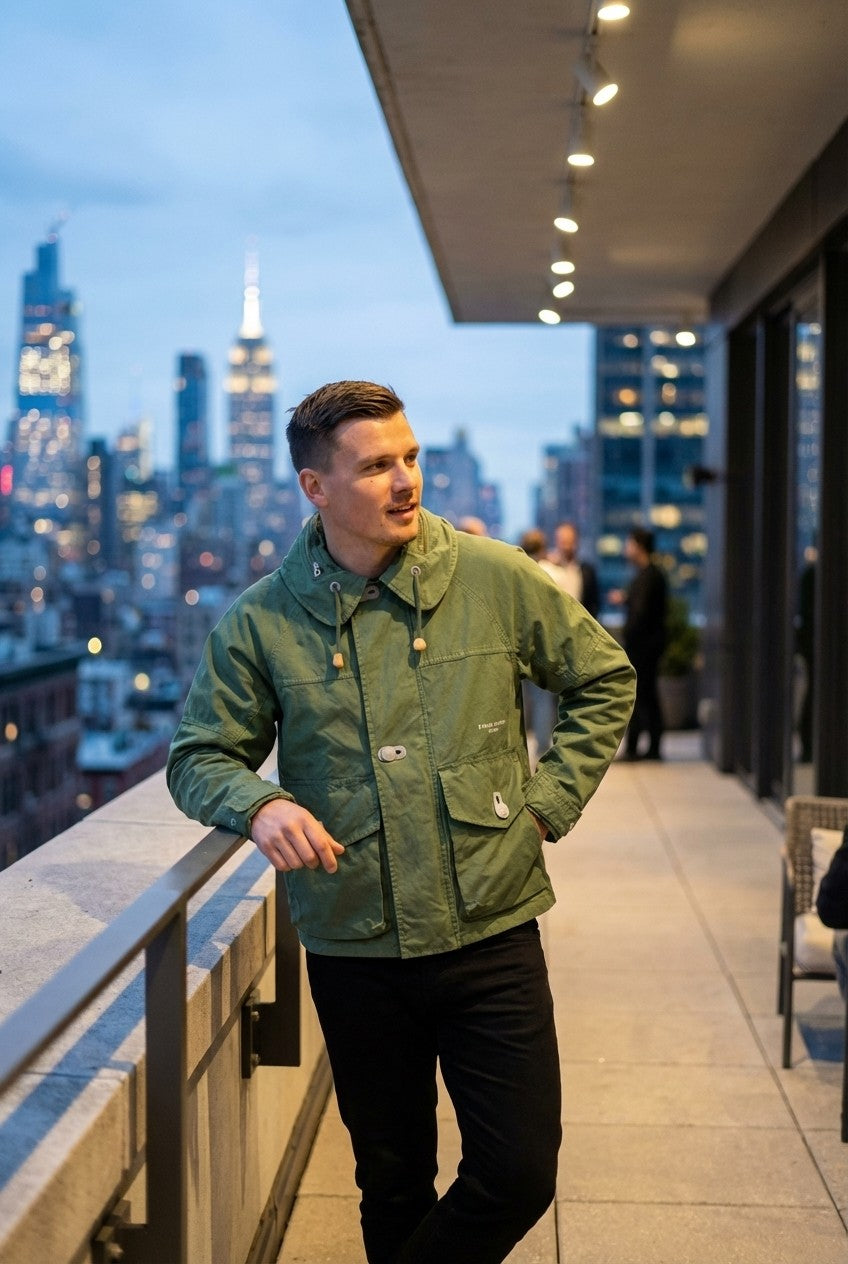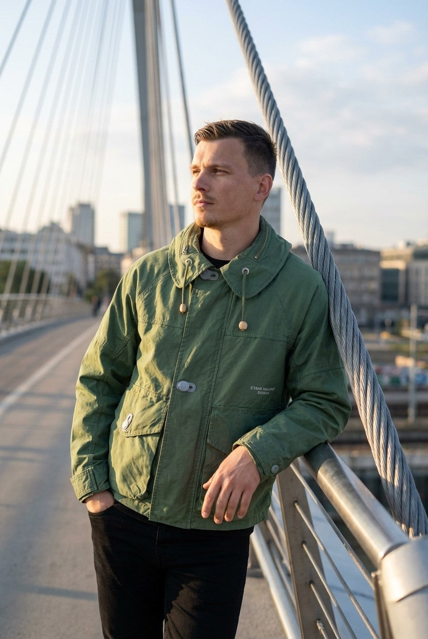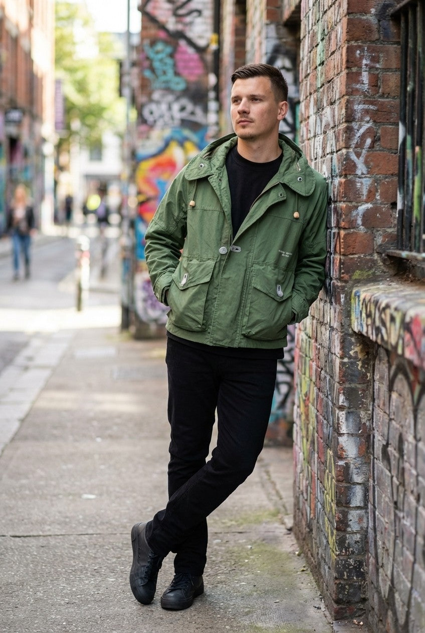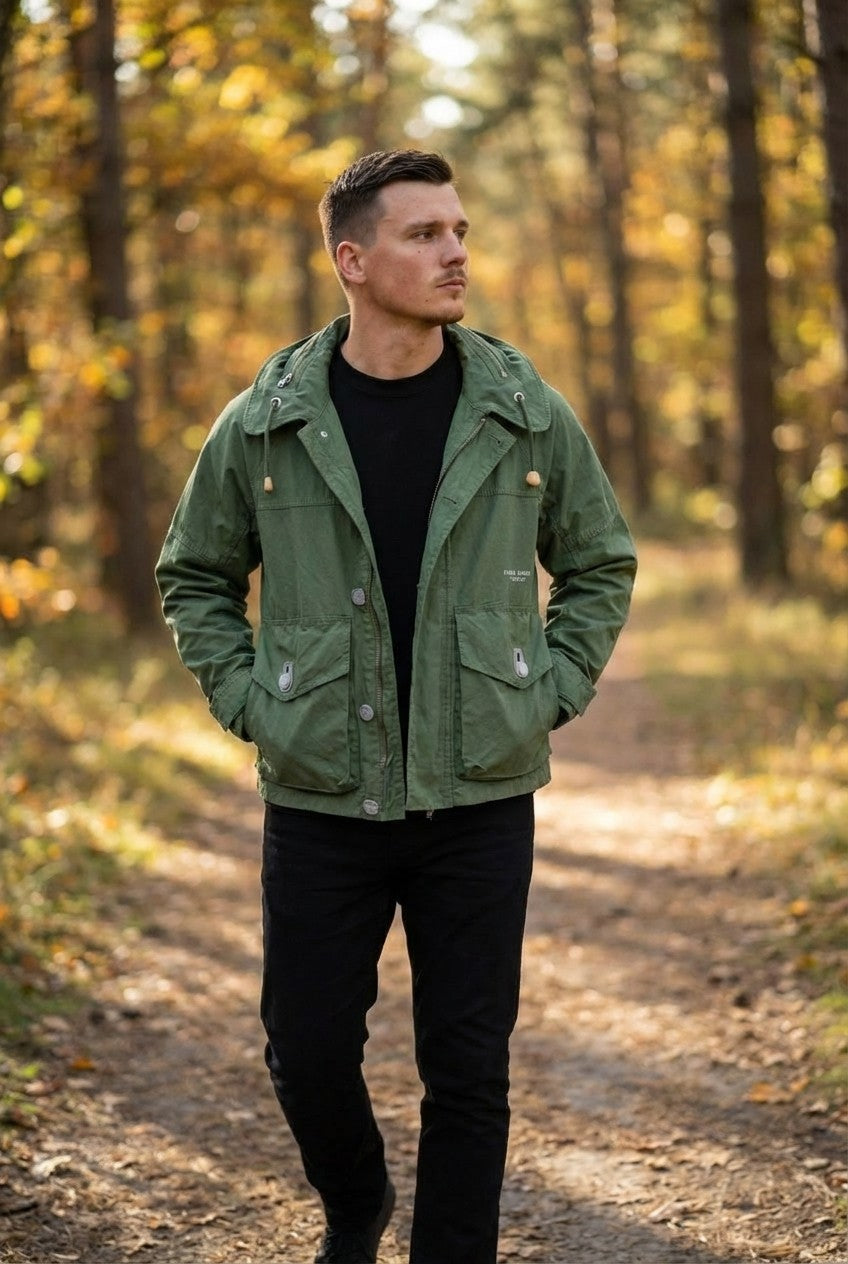 Rugged utility meets modern urban design. This olive green hooded jacket is engineered for the explorer who values both function and aesthetic, offering a durable outer layer for any adventure.