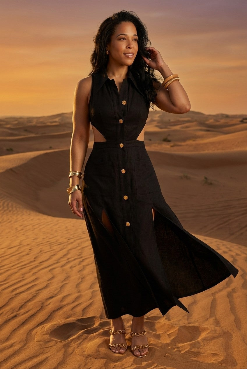 Pair it with sandals for a relaxed daytime look, or elevate it with heels and gold accessories for dinners, travel, and refined occasions.