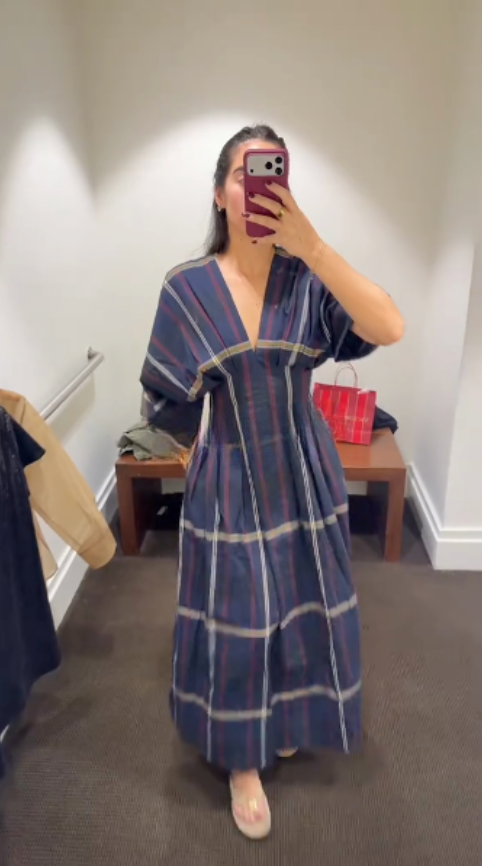 • Design: NPlaid Pleated Cotton Maxi Dress