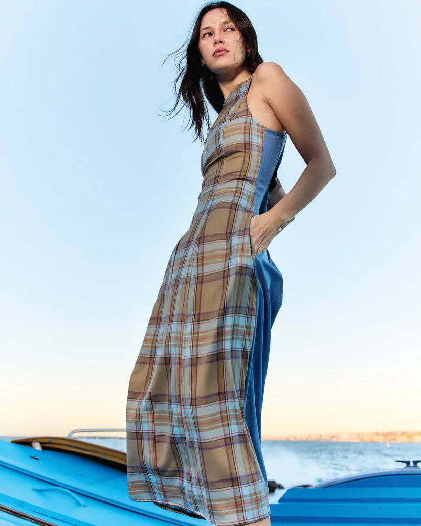 • Design: Plaid & Solid Two-Style Sleeveless Maxi Work Dress