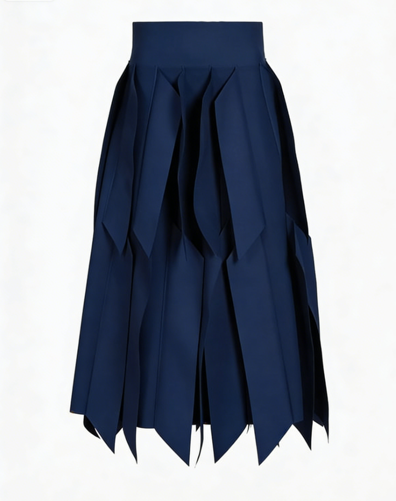 ✔ Navy blue starry print (top) & asymmetric layered silhouette (skirt)