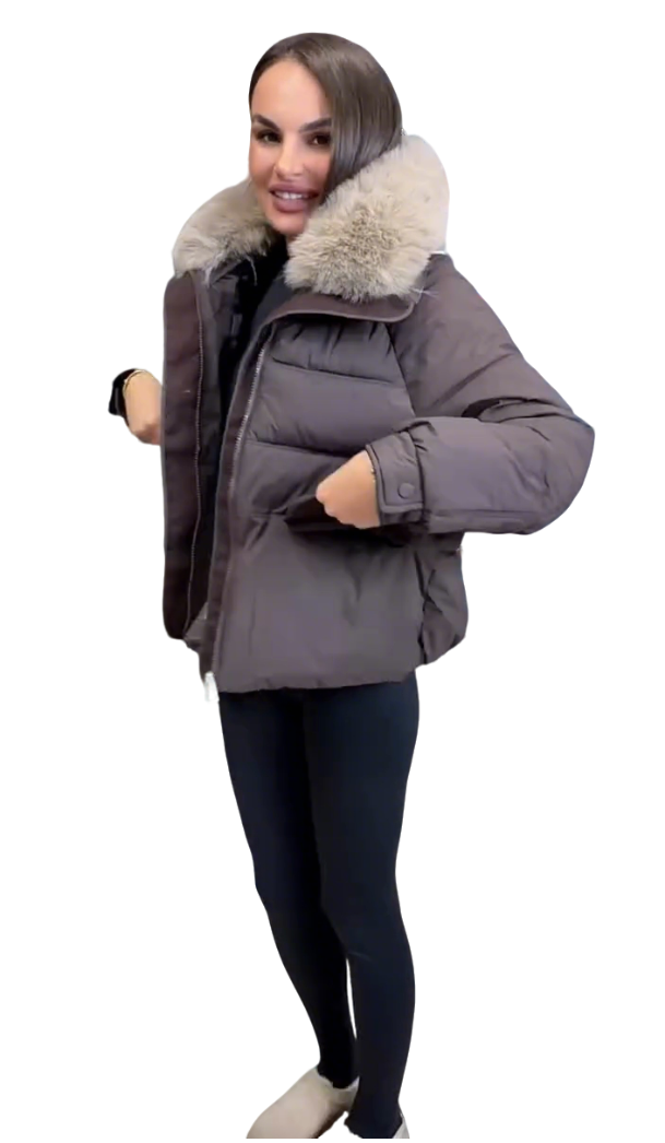 Puffer Jacket with Plush Fur Collar