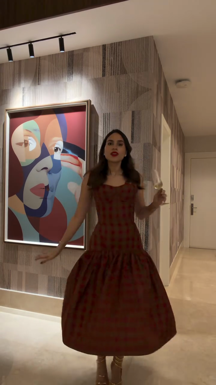 This is a red & bronze plaid satin bustier midi dress featuring a corset-style top, tie-strap details, and a ruffled midi skirt (plus lace-up back design). The style merges "vintage glamour" (satin fabric + bustier silhouette) with "modern festive charm" (bold plaid pattern + ruffled hem)—aligning with "evening events, holiday parties, or upscale social gatherings" trends, suitable for dinner receptions, festive celebrations, or pairing with statement accessories for elegant, eye-catching styling.