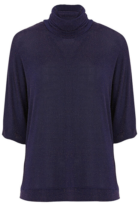 Sparkle Turtleneck Half-Sleeve Top