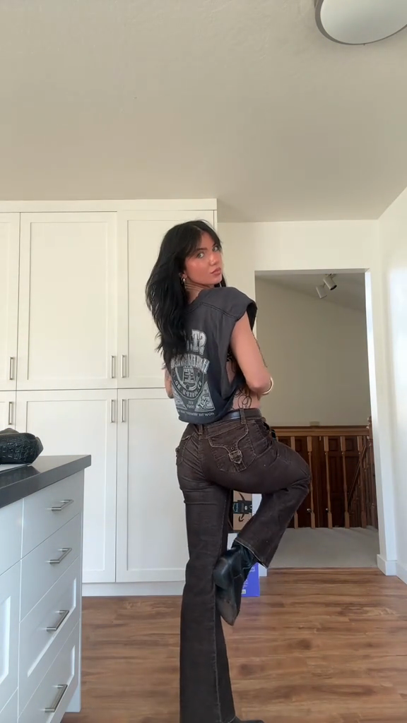 • Key Features: Flare leg silhouette, detailed stitched paneling, vintage hardware,