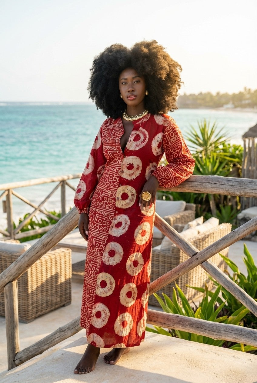 Style it with gold statement jewelry and minimalist sandals for a sophisticated, globally-inspired look.