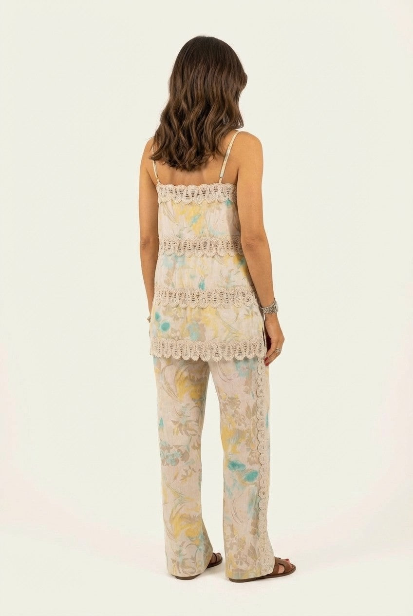 Embrace effortless summer elegance. This stunning two-piece set blends airy linen with delicate crochet detailing for a look that is as comfortable as it is chic. Perfect for your next tropical getaway or a sun-drenched weekend brunch.