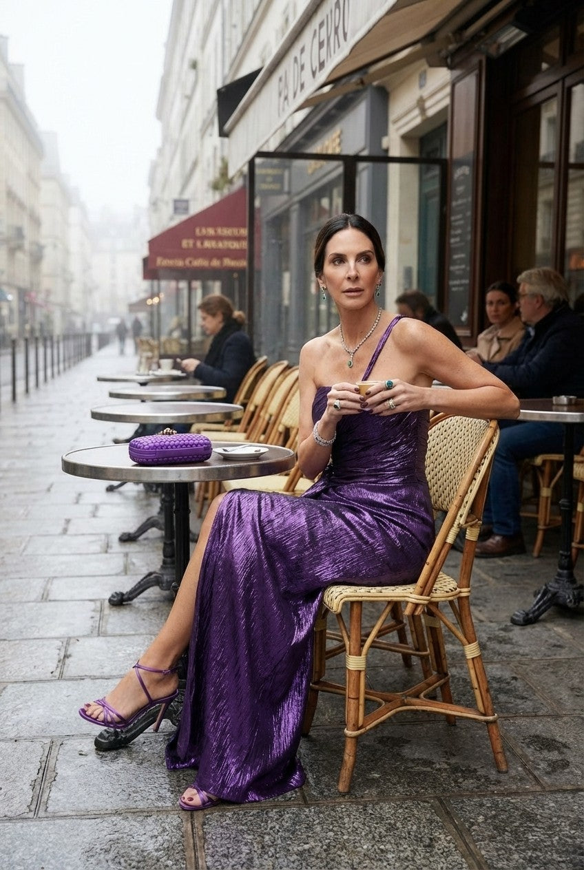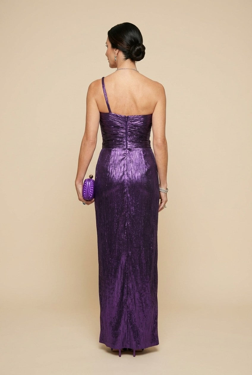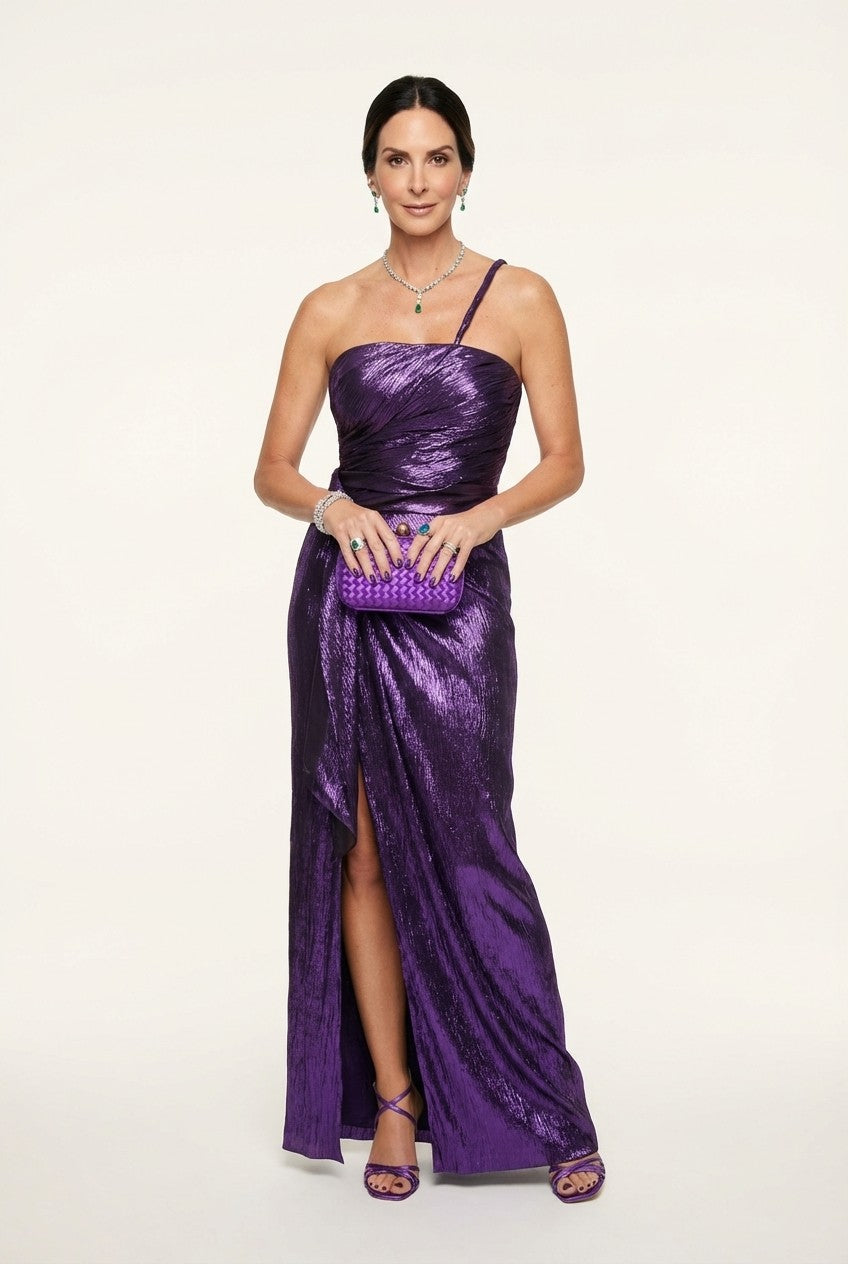 Pair with silver strappy heels and minimalist jewelry to let the vibrant purple hue take center stage.